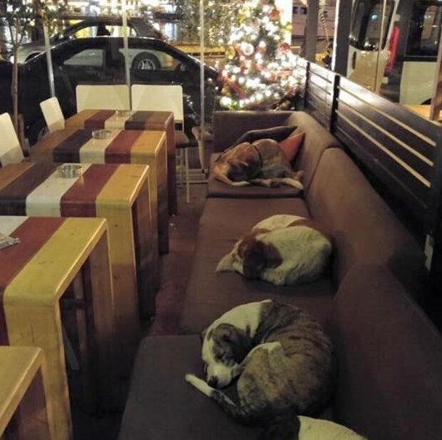 Každou noc umožňuje kavárna v Řecku toulavým psům zahřát se.