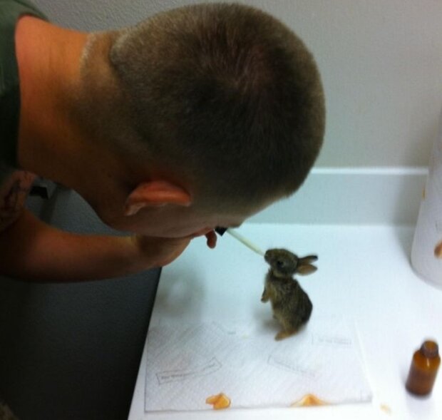 Mariňák poskytl útočiště 4 králíkům, které našel v norách vedle jejich mrtvé matky. Krmil je denně z pipety po dobu 2 měsíců.
