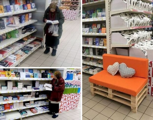 Babička každý den přichází do obchodu číst. Proto se manažer rozhodl udělat pro ni lavičku.