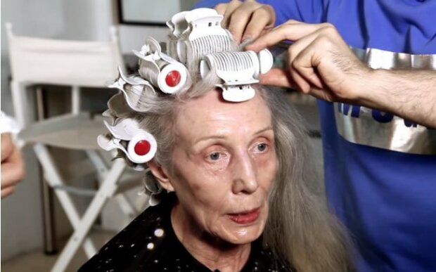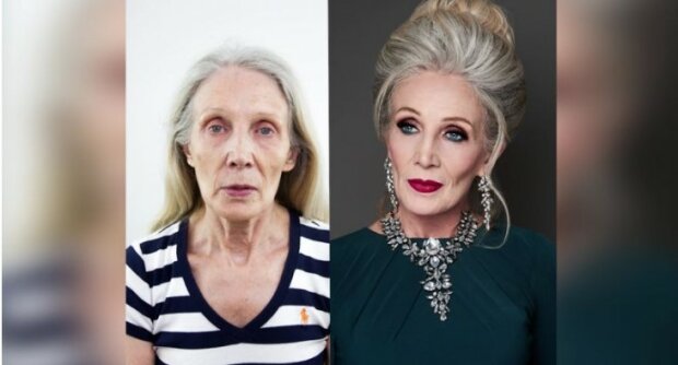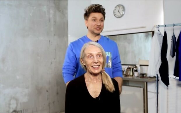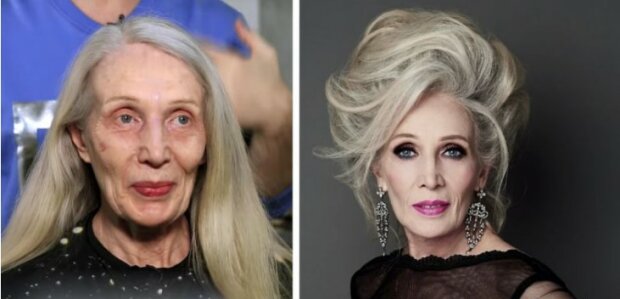 Ruslan dokázal skrýt všechny věkové nedostatky a zdůraznit přednosti modelu. Mistr odvážně použil tonální prostředky na kůži starší ženy.