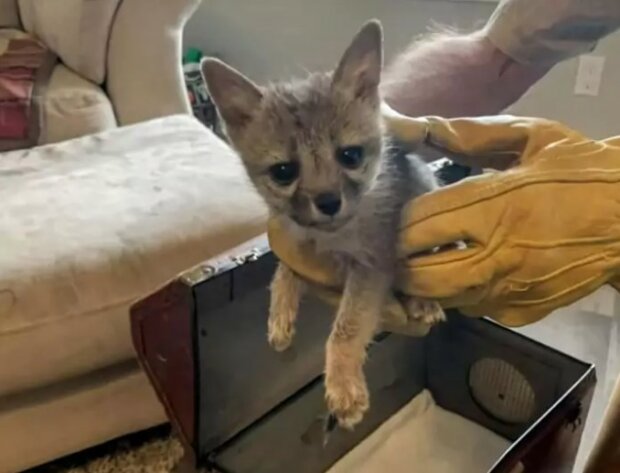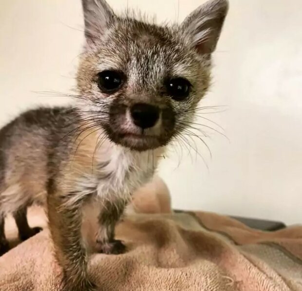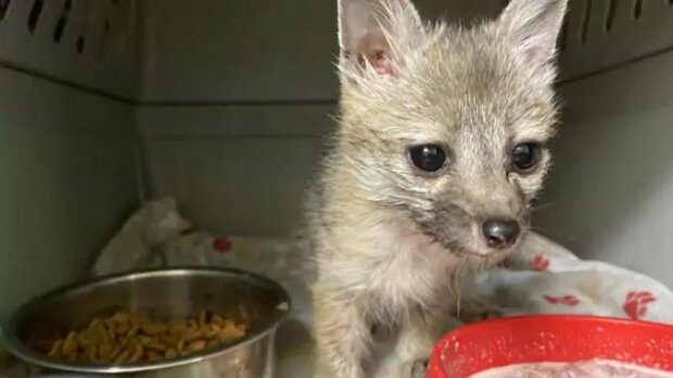 Malý lišák byl tak malý, že se mohl vejít do dlaní ruky. Později bylo známo, že dítě je jen 6 týdnů. Z nějakého důvodu zůstal bez matky a ztratil svůj norek — svůj domov.