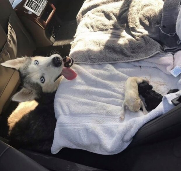 Žena chtěla fenku odvézt do jedné z místních veterinárních klinik. Ale bohužel, štěňata se začaly rodit přímo cestou. Jennifer musela fence pomoci při porodu.