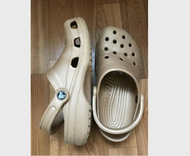 Dívka si nevybrala ani tenisky a boty, jak to často dělají milovníci extravagantního stylu. Místo páry bot zvolila béžové kroksy. Za to byla nevěsta kritizována a považovala takovou volbu za velmi nevhodnou.