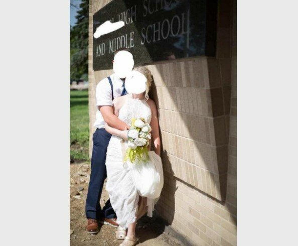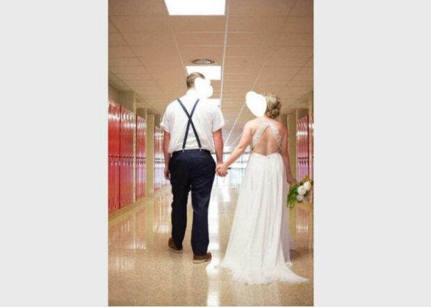 Tyto fotografie nakonec skončily na internetu. Nevěsta a ženich byli natáčeni na pozadí školních skříněk a na chodbách. Jako by to byl odkaz na první období jejich vzájemné lásky. Opět je možné poznamenat, že v mnoha akcentech není nic neobvyklého ve svatebním designu tohoto páru.