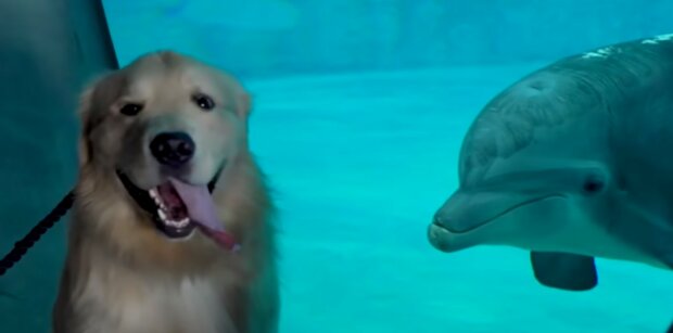 Nedávno bylo takové setkání uspořádáno pro zlatého retrívra Kevina z Tampy na Floridě a přátelskou ženskou delfínku jménem Winter z Clearwater Aquarium ve stejném stavu.