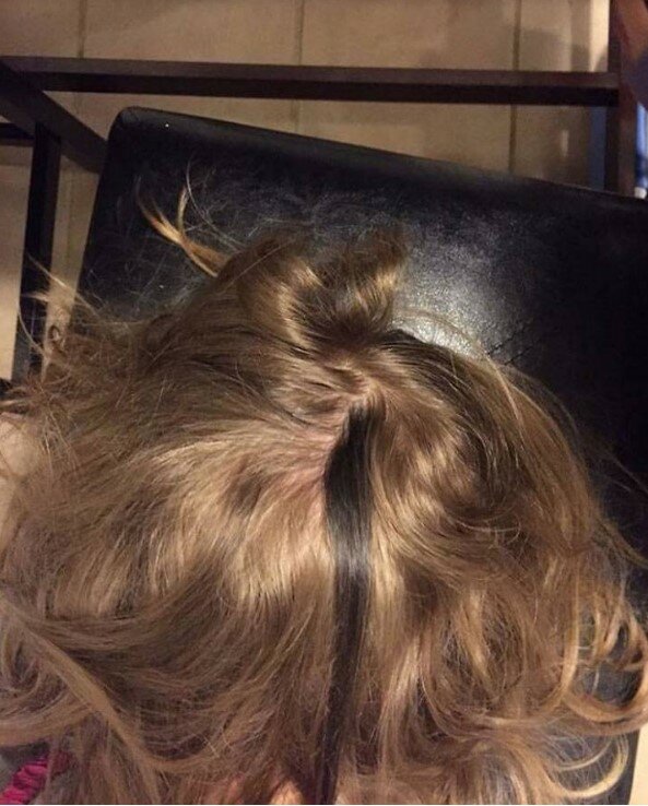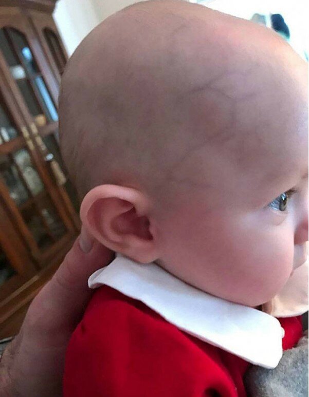 Žíly tvoří číslo "2" na hlavě této dívky