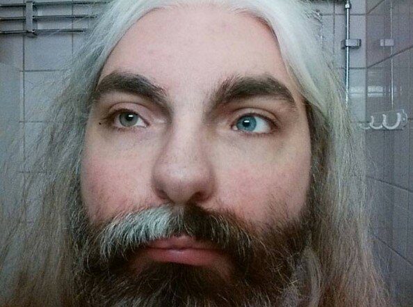 Heterochromie se může také projevit na očích, vlasech a vousů. Vypadá jako hrdina fantastického filmu!
