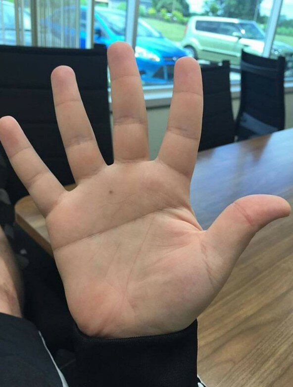 Ten chlapec má na ruce velmi neobvyklou linii. Zkuste předpovědět jeho budoucnost!