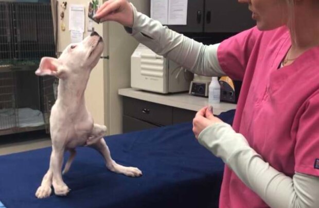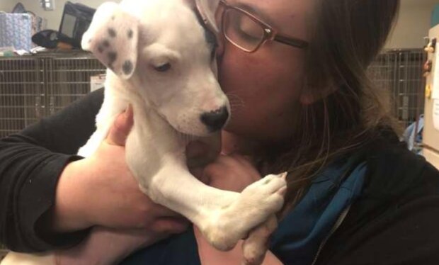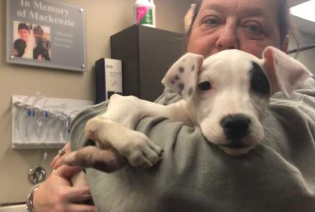Pejska pojmenovali Jem. Rodina, ve které žil, se obávala o jeho stav a majitelé si nebyli jisti, že se o něj budou moci postarat. Šli do zvláštního centra v St. Louis, kde nechali štěně a tam souhlasili, že mu pomohou.