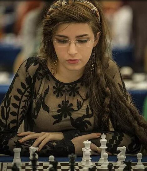 Íránská šachistka. Íránské šachistce bylo zakázáno hrát hidžábu. A co si myslíte vy? Žena se přestěhovala do USA a nyní hraje za jinou zemi, protože tam nemá zakázáno chodit bez hidžábu. Narazil jsem na mnoho podobných příběhů.