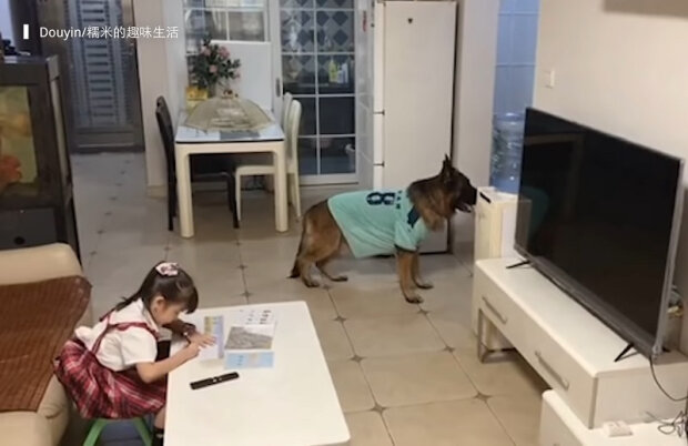 Německý ovčák varoval Guanlinu štěkáním na dveře. To je znamení, že Guanlin se musí vrátit zpět ke svým domácím úkolům a vypnout televizi.