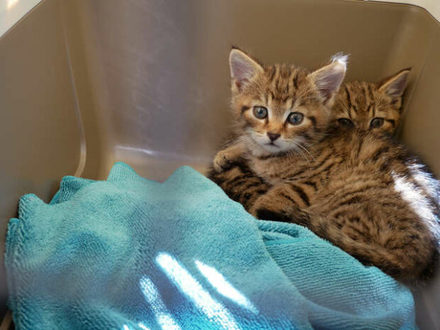 Zaměstnanci organizace je sledovali celý den, ale jejich matka se nikdy neukázala. Koťata byla slabá a potřebovala naléhavou pomoc, takže je dobrovolníci odnesli, ale pro jistotu nechali kamery v lese.