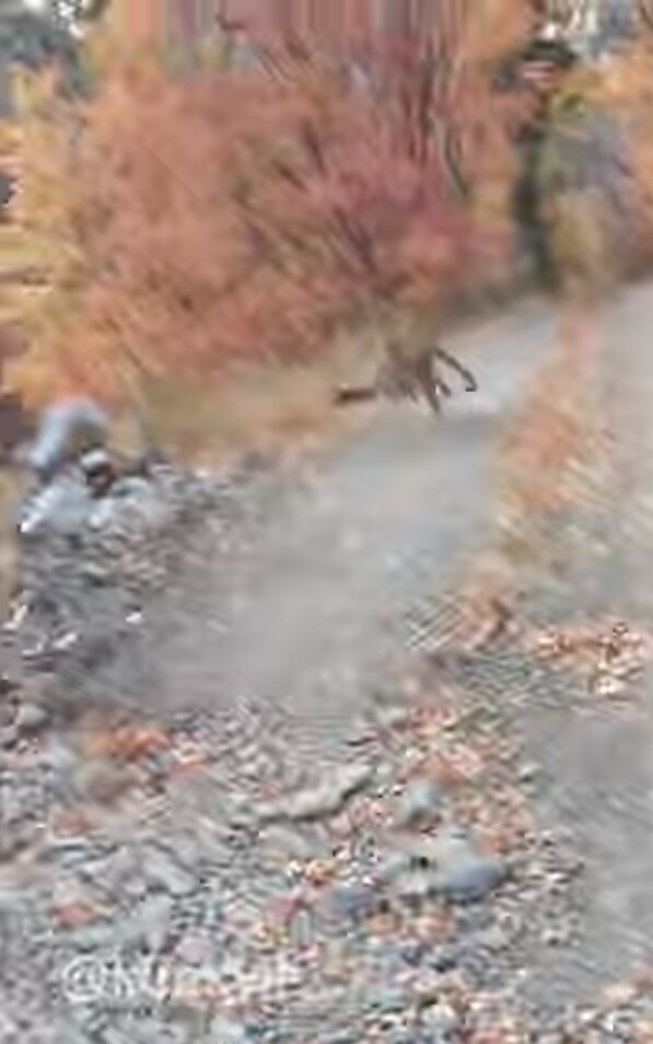 Matka, která chrání své mláďata, pronásledovala Burgese po dobu 6 dlouhých, děsivých minut, dokud do ní neházel kámen, po kterém nakonec ustoupila a vrátila se ke svým koťatům.
