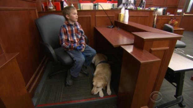 Pro děti, které by měly svědčit u soudu, může být tlak, který na ně současná situace vyvíjí, skutečným testem. Dítě může být velmi vyděšené, když se na něj dívají desítky očí: soudci, právníci, porotci. To je místo, kde se může hodit společník psa. Psi jsou zvyklí pomáhat dětem při svědectví.