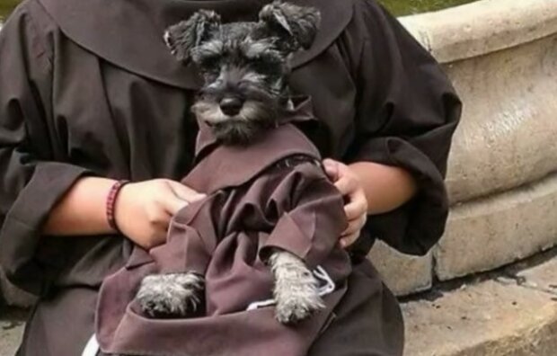 Na vyšší úrovni mniši a kostely často drželi psy, aby chránili brány. V jednom bolivijském klášteře se rozhodli, že jeden pes je tak hodný chlapec, že si zaslouží vlastní uniformu.