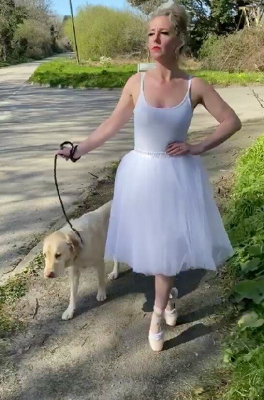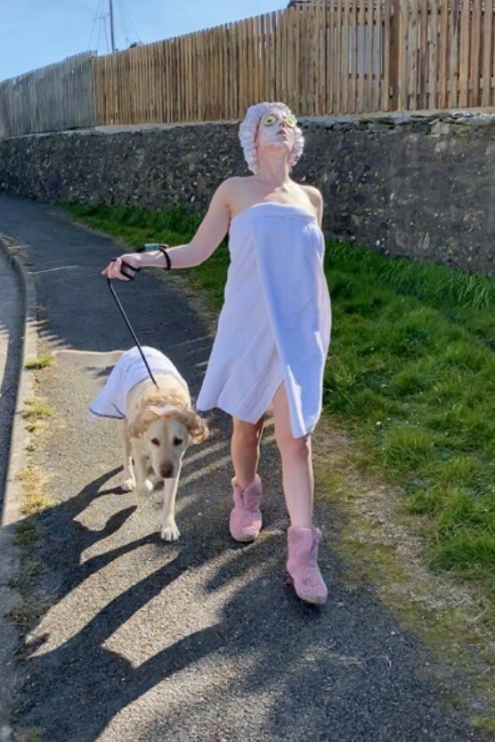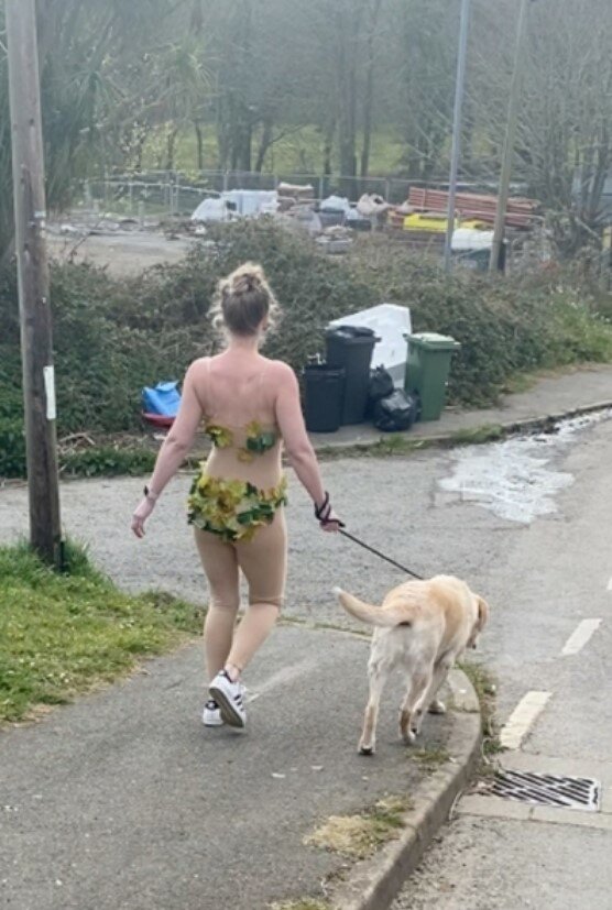 "Claire také dodala, že procházky, které dělá v kostýmech, se konají přímo před jejich domem, takže je to plně v souladu se směrnicemi vlády.“