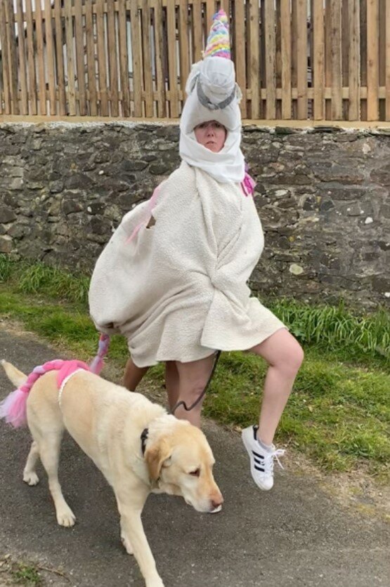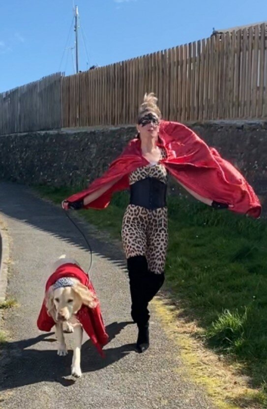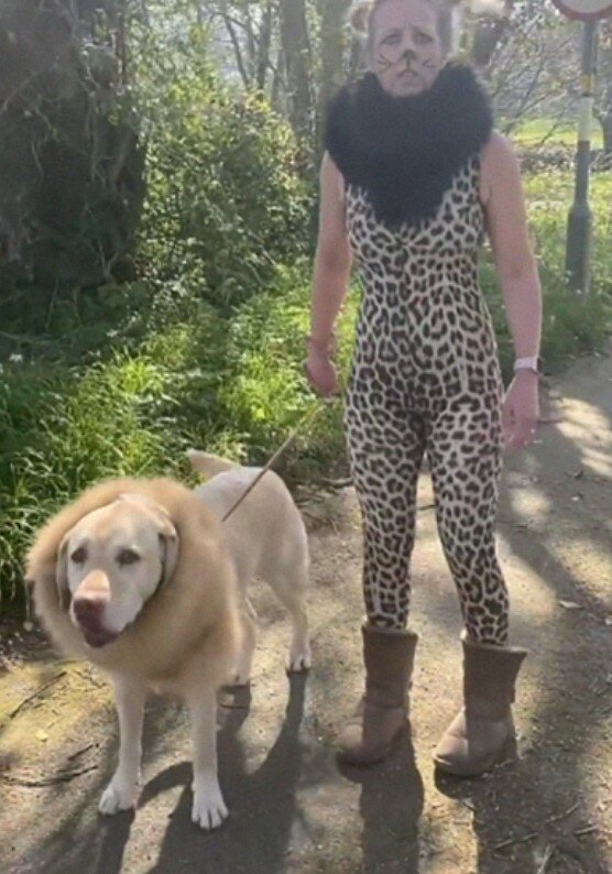 Claire Miardonová se každý den obléká do různých kostýmů při procházce se svým psem.
