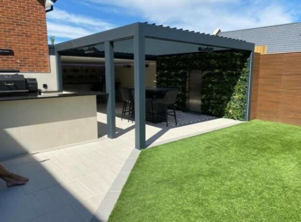Grilovací plocha je také připojena k této části, ale není pokryta.