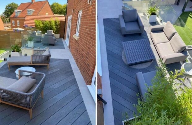 Část dvorku proto zahrnuje jídelní kout se stolem pro šest lidí.