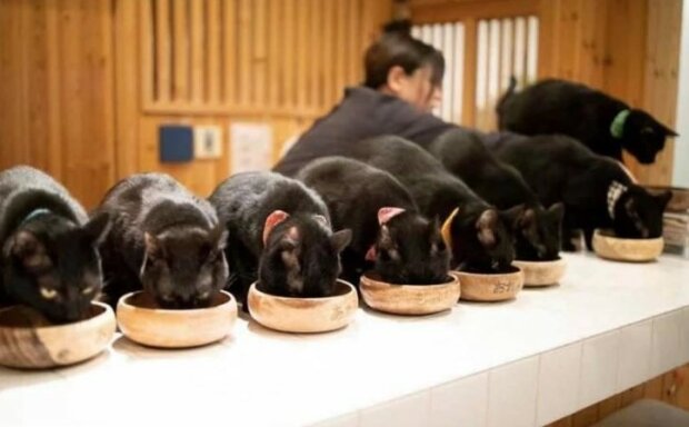 V kavárně s vtipným názvem "Nekobiyaka" v japonském Himeji žijí kočky výhradně uhelné barvy a nežijí tak špatně!
