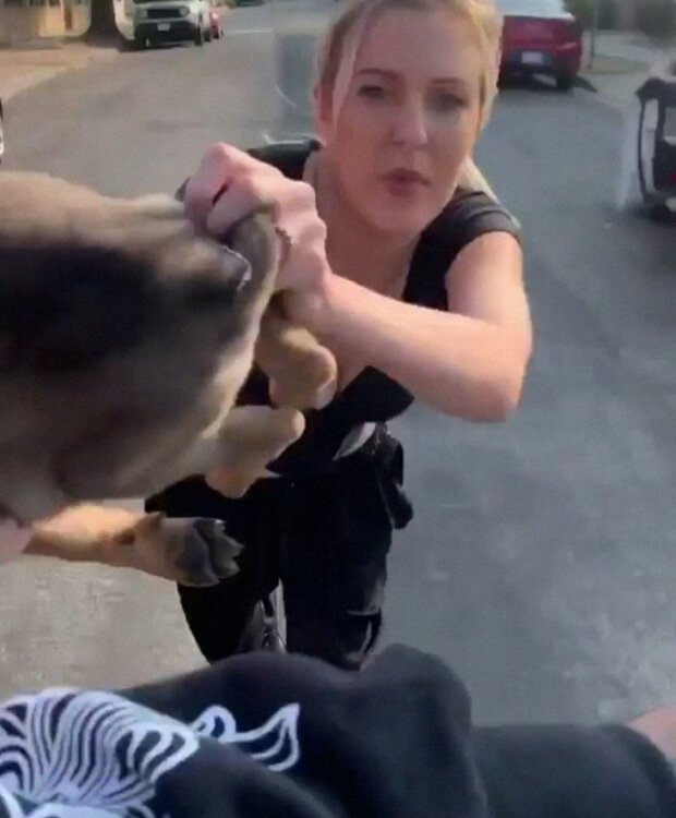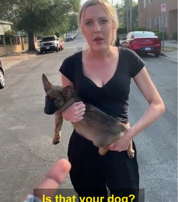 Nakonec, když se rapper zeptal ženy, co je to za štěně a proč ho tak nebezpečně drží, žena zuřivě hodila štěně do něj, zjevně zranila chudou bytost