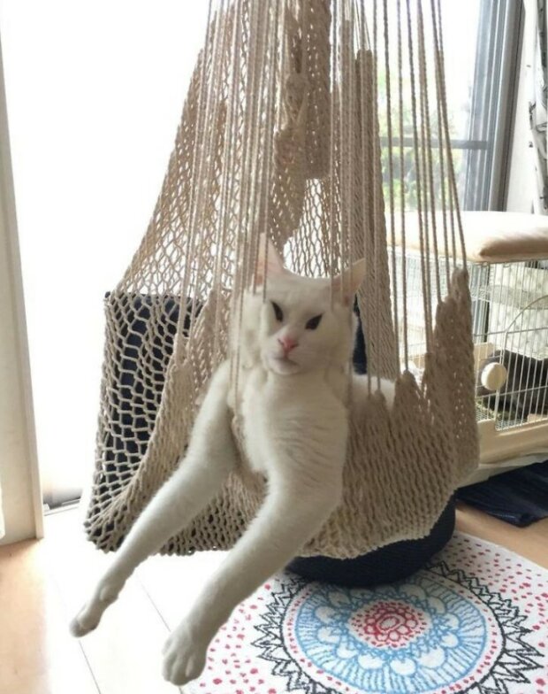 "Jsem kočka jednoduchá. Vidím kolena, lehám si.»
