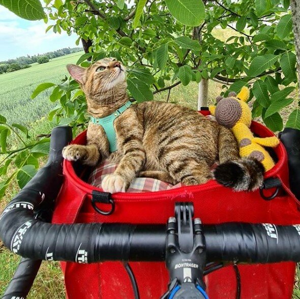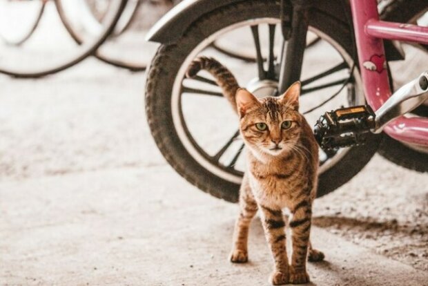 Cyklista a kočka přitahují pozornost, ať se objeví kdekoli.