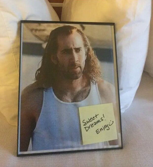 „Mohu, prosím, mít na posteli v 6 hodin snímek Nicolase Cagea ve filmu Con Air?"- "Rádi vám pomůžeme. Ramone." - "Díky!»