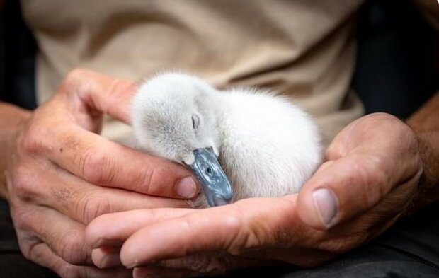 Po veterinárním vyšetření bylo kachničce křídlo vyléčeno a předepsáno jídlo. Ukázalo se, že je to dítě divoké labutě, ale přesto vyžadovalo hodně lásky a péče.