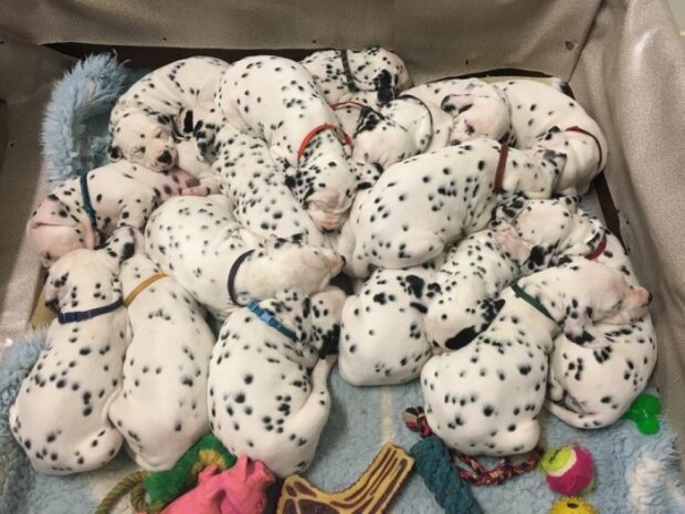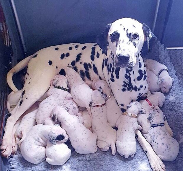 Řekla, že porod Molly byl přirozený, a majitelé si nejprve mysleli, že tam bylo jen 15 štěňat, ale další tři se objevila později.