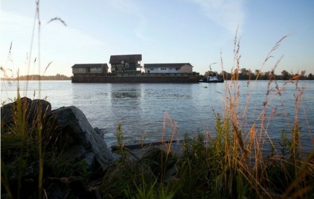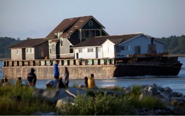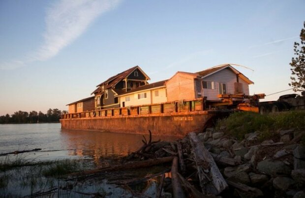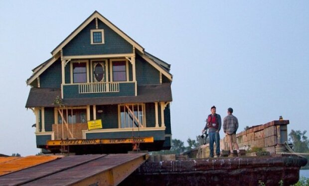 Budova byla odvezena do přístavu а naložena na člun. A poté byla převezena na nové místo.