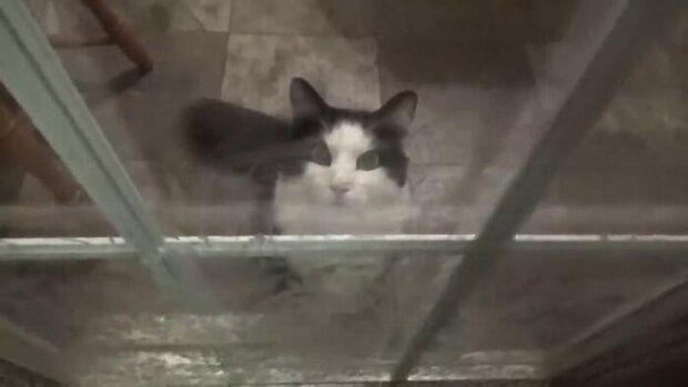 Když se nádoba vyprázdníla, jde muž do domu, aby pro mývaly získal další párky.