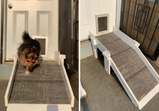 Dobře, rozhodně to není nejlepší příspěvek pro tuto výzvu, ale můj starší pes má skoliózu a IVDD. Můj dům má v přízemí dveře pro psy, ale viděl jsem, že je pro ně stále těžší a těžší tam chodit. Jednoho dne jsem mu tedy postavil rampu.