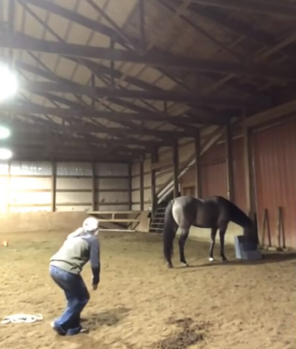 Kůň na to téměř okamžitě zareagoval, otočil se a zamířil k dívce.