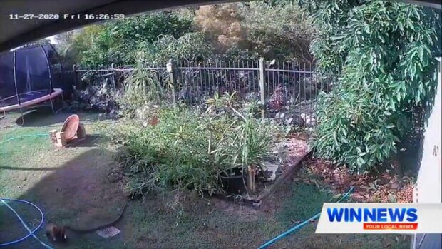 Záběry ukazují, jak had, schovaný v chilli křoví, okamžitě zaútočil na chudého Jaspera a pevně ovinul své svalnaté tělo kolem pejska.