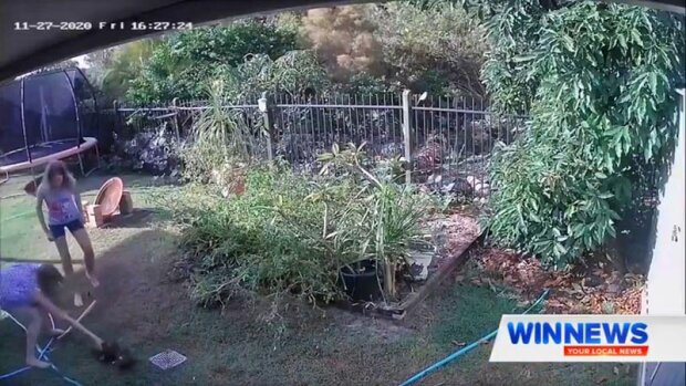 Žena musela hada zasáhnout rolkou vánočního papíru, ale když si uvědomila, že had nijak nereagoval, použila ruce.