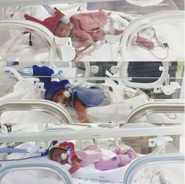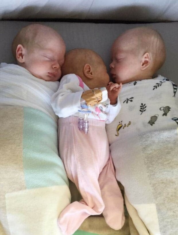 Rodiče se rozhodli pro předčasný porod. Děti byly po porodu velmi malí a slabí. Jejich stav neustále kontrolovali lékaři. Několik týdnů musely podstupovat transfuzi krve a množství dalších zákroků, které byly nutné pro záchranu jejich života.