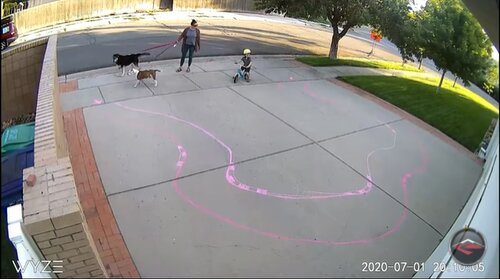 Muž se rozhodl prostudovat záznamy z kamery a zjistil, že chlapec na kole miluje svou příjezdovou cestu. Při chůzi se svými rodiči přijde do garáže mladý cyklista, aby prořízl několik kruhů.