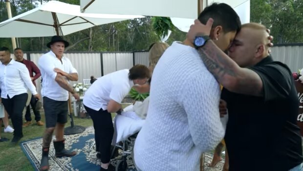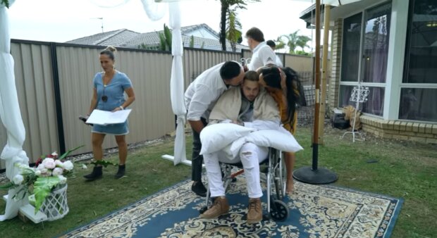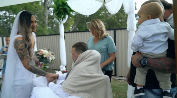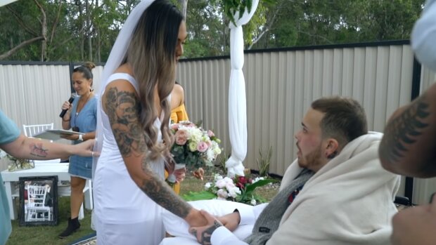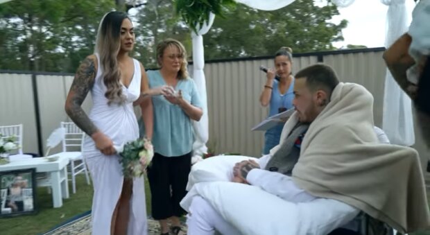 Pár hrál svatbu v zahradě na pobřeží. Podle hostů byl obřad velmi dojemný a nikdy nezapomenou na okamžik, kdy přátelé ženicha ho vzali na kolečkovém křesle a nevěsta mu řekla přísahu. Svatby se zúčastnil také syn novomanželů, kterému bude brzy jeden rok.