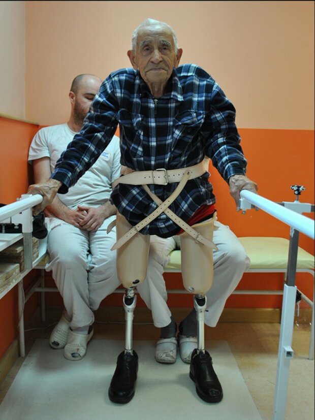 Letos byla amputace nohou nad kolena nezbytná kvůli ateroskleróze. Přes své stáří nepřestává bojovat a učí se znovu chodit. Pomáhají mu v tom zaměstnanci řešovského Ortopedického ústavu.