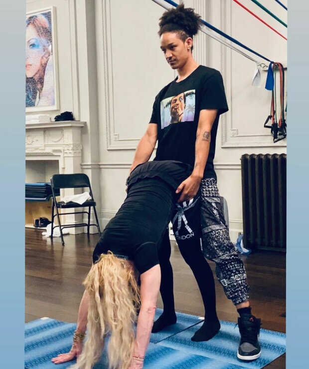 Tentokrát 61letá Madonna ukázala, jak dělá fyzikální terapii doma pomocí svého mladého přítele, 27letého tanečníka Ahlamalika Williamsa.