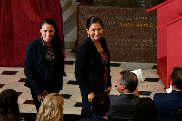 Zástupci původních obyvatel Ameriky, kteří se poprvé za 200 let stali členy amerického Kongresu: Deb Haalandová a Sharis Davidsová, první v seznamu "prvních".